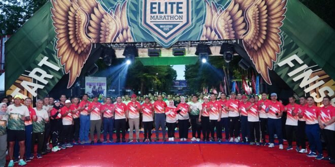 Portalindonews.com | Makassar – Dalam rangka memperingati Hari Ulang Tahun (HUT) ke-80 Tentara Nasional Indonesia (TNI) tahun 2025, Kodam XIV/Hasanuddin menggelar ajang TNI 80 Elite Marathon Piala Panglima TNI yang berlangsung di Lapangan Hasanuddin, Jl. Jenderal Sudirman, Kota Makassar, Minggu (14/9/2025).