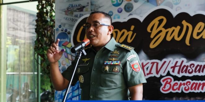 Portalindonews.com | Makassar – Dalam rangka mempererat komunikasi yang harmonis sekaligus meningkatkan hubungan silaturahmi, Penerangan Kodam (Pendam) XIV/Hasanuddin yang dipimpin oleh Kapendam XIV/Hsn Kolonel Kav Budi Wirman, S.Sos., PgDipPICT, menggelar kegiatan Ngopi Bareng bersama awak media, yang berlangsung di Kantor Pendam, Jl. Urip Sumoharjo, Kota Makassar, Senin (15/9/2025).