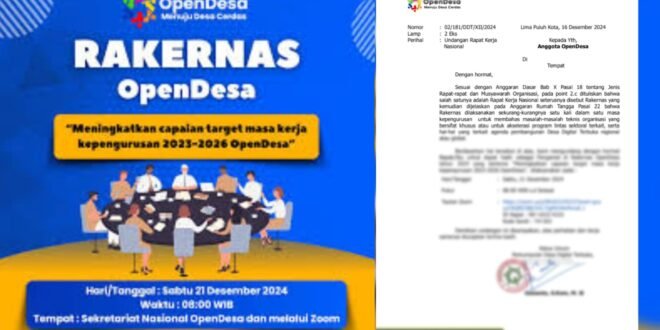 Portalindonews.com | Jakarta, Untuk Lima Puluh Kota di Indonesia, perkumpulan Desa Digital Terbuka (OpenDesa) akan menggelar Rapat Kerja Nasional (Rakernas) tahun 2024 pada Sabtu, 21 Desember 2024. Acara yang bertema “Meningkatkan capaian target masa kerja kepengurusan 2023-2026 OpenDesa” ini akan menjadi forum strategis untuk membahas akselerasi program lintas sektoral terkait agenda pembangunan desa digital regional dan global, Jumat, 16/12/2024.