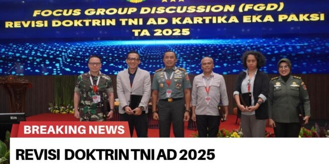 Portalindonews.com | Jakarta. Komandan Kodiklatad Letjen TNI Mohamad Hasan memimpin pelaksanaan Focus Group Discussion (FGD) Revisi Doktrin TNI AD Kartika Eka Paksi TA 2025 yang digelar di Aula Jenderal Besar A.H. Nasution, Mabesad Jakarta Pusat, Kamis (23/10/2025).