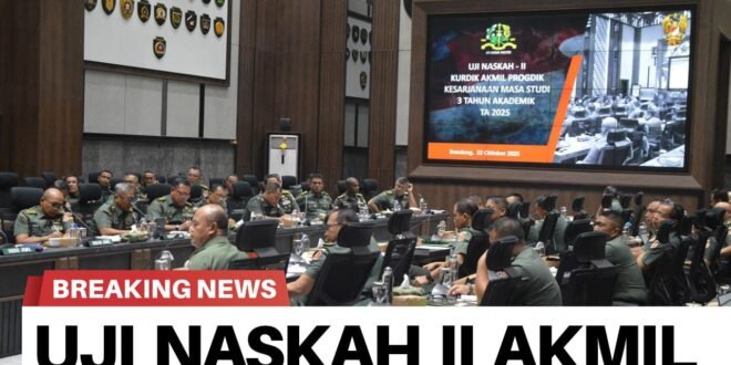 Portalindonews.com | Bandung. Komandan Kodiklatad Letjen TNI Mohamad Hasan memimpin pelaksanaan Uji Naskah II Kurikulum Program Studi Akademi Militer Masa Studi 3 Tahun Akademik yang berlangsung di Gedung Ganesha Kodiklatad, Rabu (22/10/2025).