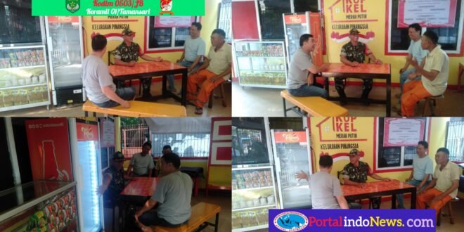 Portalindonews.com | Jakarta Barat, Kodam Jaya _ Bangun keakraban dengan melakukan komunikasi sosial seperti yang dilakukan Babinsa Koramil 01/Tamansari Kodim 0503/JB, Serma Wakdinator pada hari Jumat, 31 Oktober 2025, Komsos dengan Petugas Koperasi Merah Putih di Jalan Mangga Dua 1, Kelurahan Pinangsia, Kecamatan Tamansari Jakarta Barat.