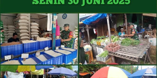 Portalindonews.com | Kodam Jaya, Kodim 0503/JB _ Memastikan stabilitas harga, mencegah kenaikan signifikan, dan mengantisipasi penimbunan barang pokok yang dapat merugikan masyarakat, Babinsa Koramil 01/Tamansari, Serka Rudiyanto pemantauan perkembangan harga bahan pokok di PD Pasar Pecah Kulit Jalan Mabes XI Kelurahan Pinangsia, Kecamatan Tamansari, Jakarta Barat. Senin (30/6).