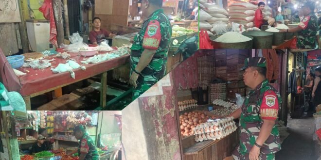 Jakarta Barat, Kodam Jaya_ Babinsa Koramil 01/Tamansari Kodim 0503/JB, Serma Agus Priyono terus mengadakan pengecekan perkembangan harga sembako di wilayah, khususnya di pasar Pecah Kulit Jalan Mangga Besar IX RW. 01, Kelurahan Pinangsia Kecamatan Tamansari Jakarta Barat. Sabtu (01/11).