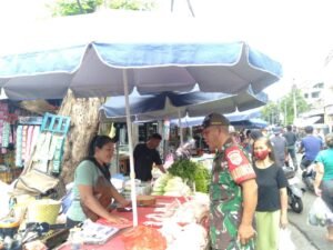 Serma Wakdinator turun ke pasar lakukan interaksi dengan para pedagang dan pengunjung agar dapat mengetahui jelas harga bahan pokok.