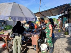 Menurut Babinsa, .Tujuan turun langsung ke pasar guna berinteraksi bersama para pedagang dan pembeli untuk memastikan harga-harga sembako yang ada di pasar sekaligus monitoring keamanan dan kebersihan pasar.