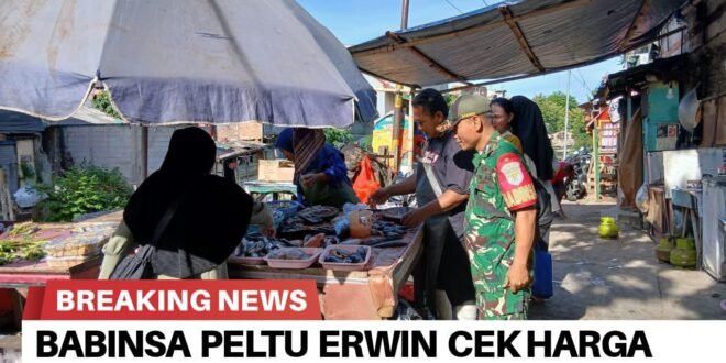 Babinsa Koramil 01/Tamansari Kodim 0503/JB, Peltu Erwin yang turun ke salah satu pasar, tepatnya di Pasar Pecah Kulit Jalan Mangga Besar XI, Kelurahan Pinangsia Kecamatan Tamansari Jakarta Barat untuk mengadakan pengecekan harga dan situasi pasar.