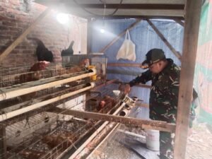 Portalindonews.com | Kodam Jaya, Jakarta Barat _ Monitoring terhadap perkembangan budidaya ayam petelur yang dikelola di lingkungan Pos 12 Koramil 01/Tamansari kembali di lakukan Piket Koramil 01/Tamansari Kodim 0503/JB oleh Babinsa Kelurahan Maphar Pelda Ery Hendrawan. Minggu, (26/10).