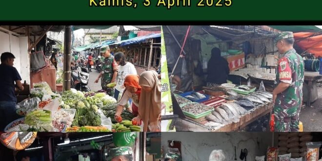 PortalindoNews.com | Kodam Jaya, Kodim 0503/Jakarta Barat _ Usai melaksanakan giat komsos di wilayah, Babinsa Koramil 01/Tamansari Peltu Erwin melanjutkan tugas rutinnya menyambangi pasar guna mengecek perkembangan harga sembako yang ada di PD Pasar Pecah Kulit Jalan Mangga Besar XI, Kelurahan Pinangsia, Kecmatan Tamansari Jakarta Barat. Rabu (3/4).