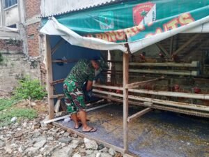 Babinsa Serka Kusnodin dalam melaksanakan tugas Piketnya menyempatkan diri untuk memonitoring perkembangan ayam petelur di Lokasi Pos 12 Jalan Mangga Besar IX, RT. 015/001, Kelurahan Tangki Kecamatan Tamansari – Jakarta Barat. Kamis (18/9/2025).