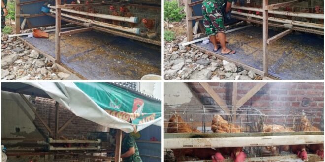 Dalam kesempatan tersebut Serka Kusnodin mengecek kondisi ayam, memberi makan, membersihkan kandang dan mengambil telur.