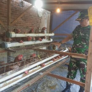 “Personel koramil yang melaksanakan piket turun langsung dengan melakukan perawatan hingga memberi pakan dan minum pada ayam petelur, dan juga membersihkan kandang.”kata Babinsa.