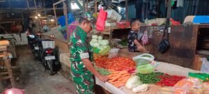 “Turunnya Babinsa kepasar bukan semata cek harga sembako, tapi terpenting pantau keamanan lingukungan dan sekitar pasar merupakan tugas pokok Babinsa memberikan keamanan di wilayah.”jelas Peltu Anton.