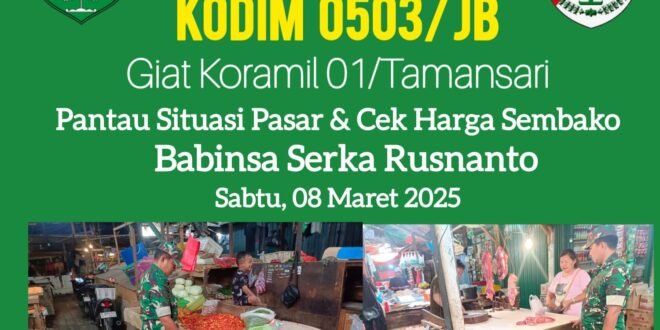 Portalindonews.com | Kodam Jaya, Jakarta Barat _ Perkembangan harga sembako di pasar wilayah teritorial Koramil 01/Tamansari Kodim 0503/Jakarta Barat di bulan suci ramadhan ini terus di pantau para Babinsa secara bergantian setiap harinya guna menghindari adanya pedagang yang sengaj menaikkan harga.