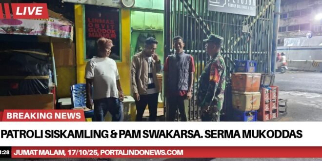 Portalindonews.com | Kodam Jaya, Jakarta Barat _ Pos RW. 01 Kelurahan Tamansari, Pos RW. 01 Kelurahan Mangga Besar, Pos RW Kelurahan Tangki dan Pos RW Kelurahan Pinangsia menjadi sasaran Babinsa Serma Mukoddas dalam giat Patroli Siskamling dan Pam Swakarsa. Jumat malam (17/10/2025).