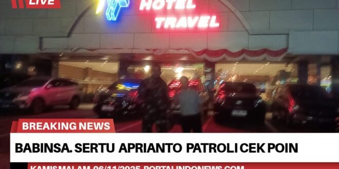 Portalindonews.com | Kodam Jaya, Jakarta Barat _ Personil Koramil 01/Tamansari Kodim 0503/JB, Babinsa Sertu Aprianto gencarkan patroli cek poin dalam rangka antisipasi gangguan Kamtibmas di wilayah Kecamatan Tamansari pada kamis malam, 06 November 2025 pukul 21.30 Wib.