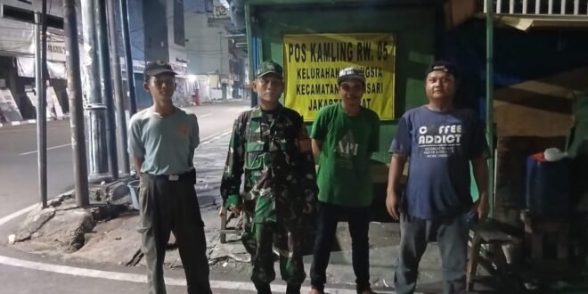 Portalindonews.com | Kodam Jaya, Jakarta Barat _ Dalam upaya menjaga keamanan lingkungan sekaligus mencegah terjadinya tindak kejahatan dan gangguan ketertiban masyarakat, Kodim 0503/JB melalui Babinsa Koramil 01/Tamansari melaksanakan patroli sistem keamanan lingkungan (Siskamling) dan Pam Swakarsa (Pengamanan Swakarsa) bersama warga pada pukul 21.00 Wib. Sabtu (27/9).