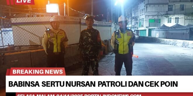 Portalindonews.com | Kodam Jaya, Jakarta Barat _ Cek poin (check point) yang dilakukan Bintara Pembina Desa (Babinsa) adalah untuk memelihara dan memastikan keamanan serta ketertiban di wilayah binaannya, seperti yang dilakukan Babinsa Koramil 01/Tamansari Kodim 0503/JB, Sertu Nursan Pada Selasa Malam, 04 November 2025, pukul 22.00 Wib.