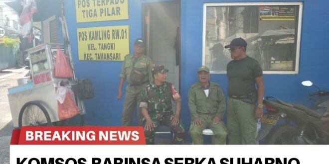 Portalindonews.com | Kodam Jaya, Jakarta Barat _ Anggota Koramil 01/Tamansari Kodim 0503/JB, Serka Suharno melaksanakan Komunikasi Sosial (Komsos) dengan Linmas RW.001, di Jalan Mangga Besar XI, RT. 014/001, Kelurahan Tangki, Kecamatan Tamansari Jakarta Barat. Jumat (07/11/2025).