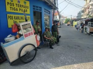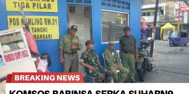 Portalindonews.com | Kodam Jaya, Jakarta Barat _ Anggota Koramil 01/Tamansari Kodim 0503/JB, Serka Suharno melaksanakan Komunikasi Sosial (Komsos) dengan Linmas RW.001, di Jalan Mangga Besar XI, RT. 014/001, Kelurahan Tangki, Kecamatan Tamansari Jakarta Barat. Jumat (07/11/2025).