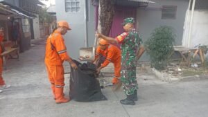 Babinsa Koramil 01/Tamansari dan PPSU Karya Bakti Bersihkan Lingkungan
