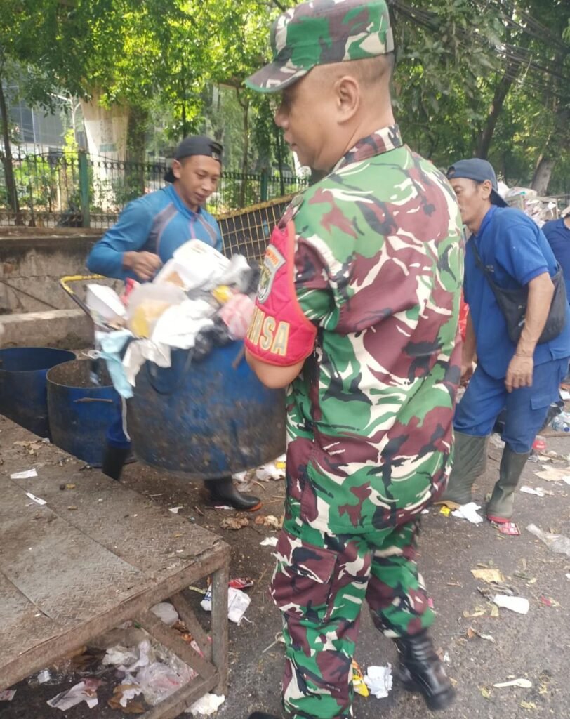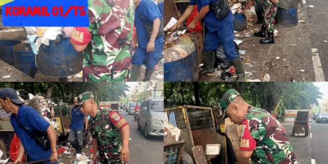 Portalindonews.com | Kodam Jaya, Jakarta Barat _ Bersama 10 personil petugas PPSU Kelurahan Tamansari, Babinsa Koramil 01/Tamansari Kodim 0503/JB, Serma Mukoddas karya bakti pembersihan lingkungan di jalan Mangga besar 2, RT. 012, RW. 02, Kelurahan Tamansari, Kecamatan Tamansari, Kota Adm Jakarta Barat. Sabtu (11/10).