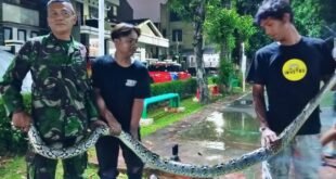 PORTALINDONEWS.COM | Kodam Jaya, Jakarta Barat – Aksi Babinsa Koramil 03/Grogol Petamburan Serka Heru Wahyana bersama warga berhasil menangkap dan mengevakuasi hewan reptil berupa seekor ular sanca kembang berukuran panjang 3 meter dengan bobot ±10 kg yang melilit di dalam semak-semak yang bertempat di Taman Blok Garuda, RT.007/RW.02 Kelurahan Kemanggisan, …