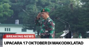 Portalindonews.com | Bandung. Komandan Kodiklatad Letjen TNI Mohamad Hasan, yang diwakili oleh Direktur Kajian (Dirjian) Kodiklatad Brigjen TNI Moch Erwansjah, S.I.P., M.Hum. bertindak selaku Inspektur Upacara pada pelaksanaan Upacara Bendera tanggal 17 Oktober 2025 yang digelar di Lapangan Makodiklatad, Jumat (17/10/2025). Upacara yang berlangsung khidmat ini diikuti oleh seluruh personel …