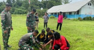 PORTALINDONEWS.COM – Kabupaten keerom – Personel Pos Ujung Karang Satgas Yonif 122/TS ternyata mampu membuat siswa SMA YPK perbatasan lebih senang dalam belajar dengan cara belajar di luar kelas dengan cara mengajak anak anak dan guru guru cinta, peduli dan damai pada lingkungan, dengan cara menanam pohon bersama sama, itulah …