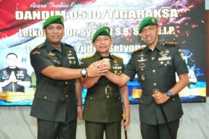 Portalindonews.com | Penrem 052 Tangerang – Komandan Korem 052/Wijayakrama, Brigjen TNI Zulhadrie S. Mara, M.Han., memimpin langsung acara penyerahan jabatan Kepala Seksi Operasi Kasrem 052/Wijayakrama dan serah terima jabatan Komandan Kodim 0510/Tigaraksa, bertempat di Makorem 052/Wijayakrama Jalan Boulevard Diponegoro, Kelapa Dua, Tangerang. Jumat (2/5/2025).