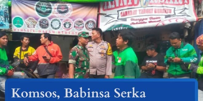 Portalindonews.com | Kodam Jaya, Kodim 0503/JB _Koramil 01/Tamansari | Babinsa Kelurahan Tangki, Serka Suharno melaksanakan komunikasi sosial (komsos) dengan Bhabinkamtibmas dan Ojek Online di Jalan Tangki Lio Timur, Kelurahan Tangki,  Kecamatan Tamansari Jakarta Barat. Sabtu (4/10).