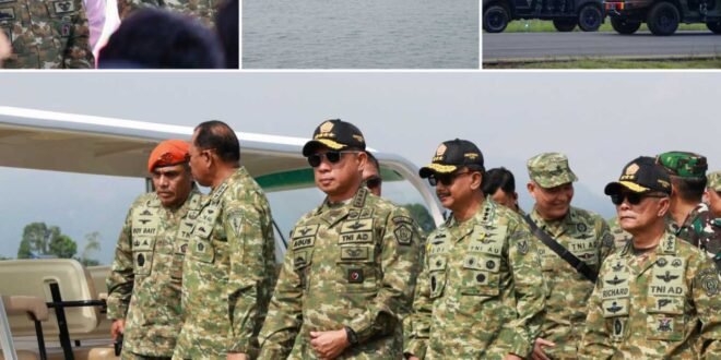SULAWESI TENGAH // Panglima TNI Jenderal TNI Agus Subiyanto mendampingi Menteri Pertahanan RI Sjafrie Sjamsoeddin bersama Jaksa Agung ST Burhanuddin, Kepala BPKP Muhammad Yusuf beserta pejabat terkait, menyaksikan secara langsung pelaksanaan Latihan Komando Gabungan (Kogab) TNI yang terintegrasi Tahun 2025 di kawasan Bandara PT IMIP, Morowali, Sulawesi Tengah, Kamis (20/11/2025).