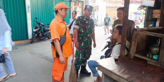 Portalindonews.com | Kodam Jaya, Jakarta Barat _ Babinsa Koramil 01/Tamansari Kodim 0503/JB Serka Rusnanto melaksanakan Komunikasi Sosial (Komsos) bersama masyarakat dan anggota PPSU di Jalan Mangga Besar XI, Kelurahan Tangki, Kecamatan Jakarta Barat. Selasa (23/9).