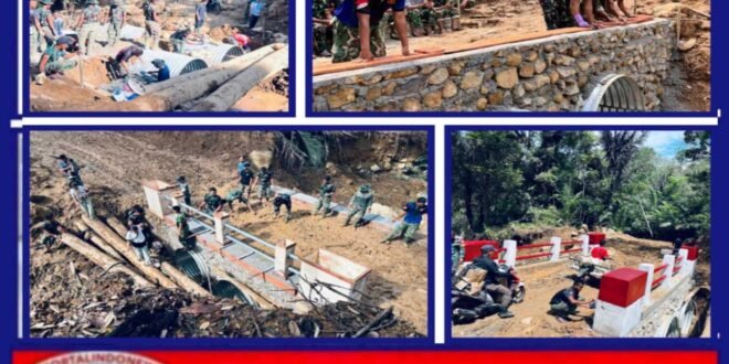 TAPANULI TENGAH — Satgas Penanggulangan Bencana Alam (Gulbencal) Kodam I/Bukit Barisan merampungkan pembangunan jembatan Aramco pascabencana banjir di Desa Masundung, Kecamatan Lumut, Kabupaten Tapanuli Tengah, Jumat (6/2/2026).