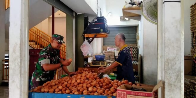 Portalindonews.com | Kodam Jaya, Jakarta Barat _ Pemantauan perkembangan harga sembako terus di gencarkan Babinsa Koramil 01/Tamansari Kodim 0503/JB dalam pendukung ketahanan pangan nasional. Hari ini Babinsa Serka Kusnodin pantau harga di Pasar GG Kancil Kelurahan Keagungan Kecamatan Tamansari Jakarta Barat. Jumat (26/9).