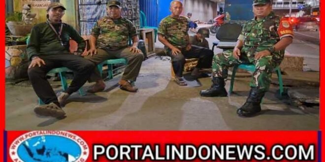 Portalindonews.com =JAKARTA, Kodam Jaya _ Babinsa Koramil 01/Tamansari Kodim 0503/JB, Serma Agus Priyono bersama komponen pendukung (Komduk) Wanra, Linmas dan warga masyarakat, melaksanakan patroli siskamling/pam swakarsa di wilayah binaan. Jumat malam (13/02).