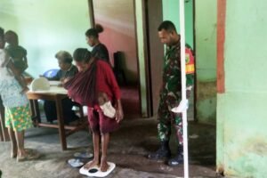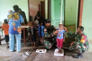 “Kegiatan Posyandu di Kampung Kweel yang diikuti puluhan anak/balita tersebut dalam pelaksanaannya petugas kesehatan Puskesmas Bupul dibantu oleh para Kader PKK Kampung Kweel dan juga personel Satgas Yonif 726/TML dengan melakukan pemeriksaan kesehatan, penimbangan berat badan, pengukuran tinggi badan, pemberian vitamin serta makanan tambahan,” ungkap Danramil Elikobel.