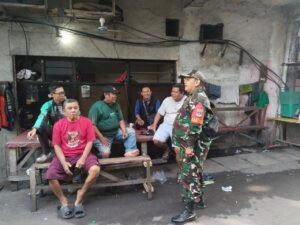 Portalindonews.com | Kodam Jaya, Jakarta Barat _ Untuk menjalin keakraban dengan warga binaan, Babinsa Pelda Ery Hendrawan anggota Koramil 01/Tamansari Kodim 0503/JB melaksanakan komunikasi sosial (Komsos) di Jalan Kebon Jeruk XVII, RW. 09, Kelurahan Maphar, Kecamatan Tamansari, Jakarta Barat. Minggu (26/10).