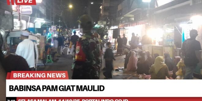 Portalindonews.com | Kodam Jaya, Jakarta Barat_ Babinsa Serka Kusnodin dan Sertu Abdi Amrizal beserta Binma Aiptu Nurahman juga satpol PP bapak Junaedi melaksanakan monitoring dan memberikan pengamanan acara Maulid Rasulullah SAW 1447 H yang di selenggarakan “FORSITA ( Forum SIlaturahim Tanah Air ). Selasa Malam (14/10).