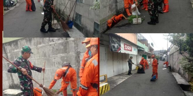 KODAM JAYA, KODIM 0503/JB _// Semangat gotong royong yang sebagai warisan budaya terus di kembangkan oleh personil Koramil 01/Tamansari, Babinsa Sertu Abdul Madi saat melaksanakan Karya Bakti denga bersinergi PPSU Kelurahan Glodok.