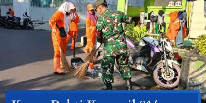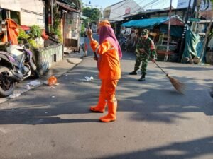Portalindonews.com | Kodam Jaya, Jakarta Barat _ Babinsa Koramil 01/Tamansari Kodim 0503/JB, Peltu Erwin melaksanakan karya bakti bersama petugas PPSU di Jl. Terong RT. 10, RW. 01, Kelurahan Mangga Besar, Kecamatan Tamansari, Jakarta barat. Sabtu (04/10).