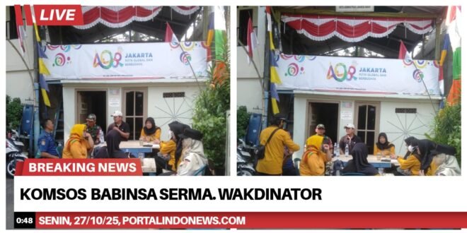 Portalindonews.com | Kodam Jaya, Jakarta Barat _ Komunikasi Sosial (Komsos) yang di laksanakan Babinsa Serma Wakdinator dengan Petugas Kasi Kesra Bapak Jamal , Pol PP Ibu Novi dan petugas Ibu PKK di Pos Sekretariat RW. 06, Kelurahan Pinangsia Kecamatan Tamansari Jakarta Barat. Senin (27/10/2025).