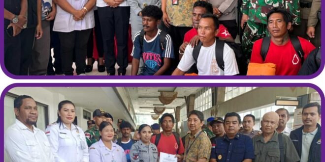 ATAMBUA — Bakamla RI melalui Stasiun Bakamla Kupang memfasilitasi proses pemulangan enam Anak Buah Kapal (ABK) KM Triasmo Sejahtera yang sebelumnya terdampar di perairan Timor Leste. Proses serah terima dilaksanakan di Pos Lintas Batas Negara (PLBN) Motaain, Atambua, Nusa Tenggara Timur, Rabu (7/1/2026).