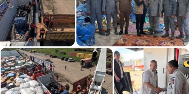 LHOKSEUMAWE – Bakamla RI lewat unsur KN. Pulau Dana-323 yang membawa bantuan kemanusiaan Peduli Sumatra seberat 92,2 ton bagi masyarakat terdampak bencana banjir dan tanah longsor berhasil sandar di Pelabuhan Lhokseumawe, Aceh, Selasa (23/12/2025).