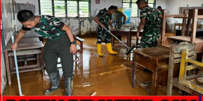 TAPANULI TENGAH, tniad.mil.id — Satgas Penanggulangan Bencana Alam (Gulbencal) kembali bergerak cepat melaksanakan pembersihan SDN 158506 Tukka di Lingkungan IV, Kelurahan Bonalumban, Kecamatan Tukka, Minggu (22/2/2026), setelah curah hujan tinggi memicu banjir susulan yang menggenangi area sekolah dengan air dan lumpur.