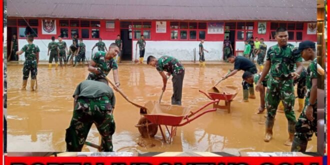 TAPANULI TENGAH, tniad.mil.id — Satgas Penanggulangan Bencana Alam (Gulbencal) bergerak cepat dengan membersihkan ulang SDN 152983 di Kelurahan Hutanabolon I, Kecamatan Tukka, Kabupaten Tapanuli Tengah, Sabtu (21/2/2026), setelah banjir susulan akibat curah hujan tinggi kembali menggenangi lingkungan sekolah.