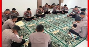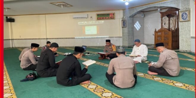 JAKARTA //– Personel Batalyon A Pelopor Satuan Brimob Polda Metro Jaya memanfaatkan momentum bulan Ramadan untuk memperkuat keimanan melalui kegiatan tadarus Al-Qur’an di Masjid At-Taubah, Selasa (10/3/2026). Kegiatan yang dilaksanakan usai apel pagi ini diikuti anggota yang tidak sedang terploting penugasan sebagai bagian dari pembinaan rohani dan mental di lingkungan Polri.