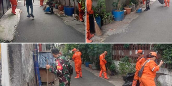 KODAM JAYA, JAKARTA BARAT _ Dalam menjaga kebersihan lingkungan di wilayah, Babinsa Koramil 01/Tamansari Kodim 0503/JB, Sertu Abdul Madi karya bakti membersihkan Jalanan dan saluran air, memotong rumput dan membuang sampah di Jalan Keadilan II, RT.08/05, Kelurahan Glodok, Kecamatan Tamansari, Kota Jakarta Barat. Selasa (18/11/2025).