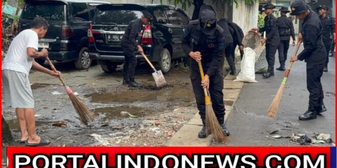TANGERANG – Batalyon C Pelopor Satuan Brimob Polda Metro Jaya melaksanakan kegiatan Gerakan ASRI di lingkungan RT 05 RW 011, Kelurahan Cipayung, Ciputat, Tangerang Selatan, Jumat (17/4/2026). Kegiatan ini difokuskan pada pembersihan fasilitas umum seperti Masjid Al Mubarokah, akses jalan menuju masjid, hingga Jalan Aneka Warga.