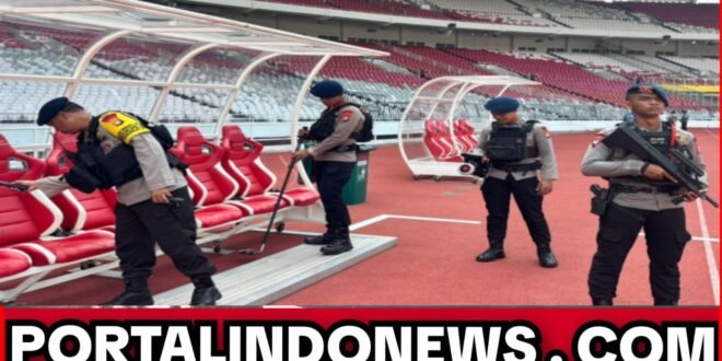Portalindonews.com // JAKARTA — Brimob Polda Metro Jaya melalui Detasemen Gegana melaksanakan pengamanan dan sterilisasi Stadion Utama Gelora Bung Karno (SUGBK), Senayan, Jakarta Pusat, jelang laga Liga 1 antara Persija Jakarta melawan Persis Solo, Senin (27/4/2026). Kegiatan dilakukan untuk memastikan stadion aman dan siap digunakan penonton maupun pemain.